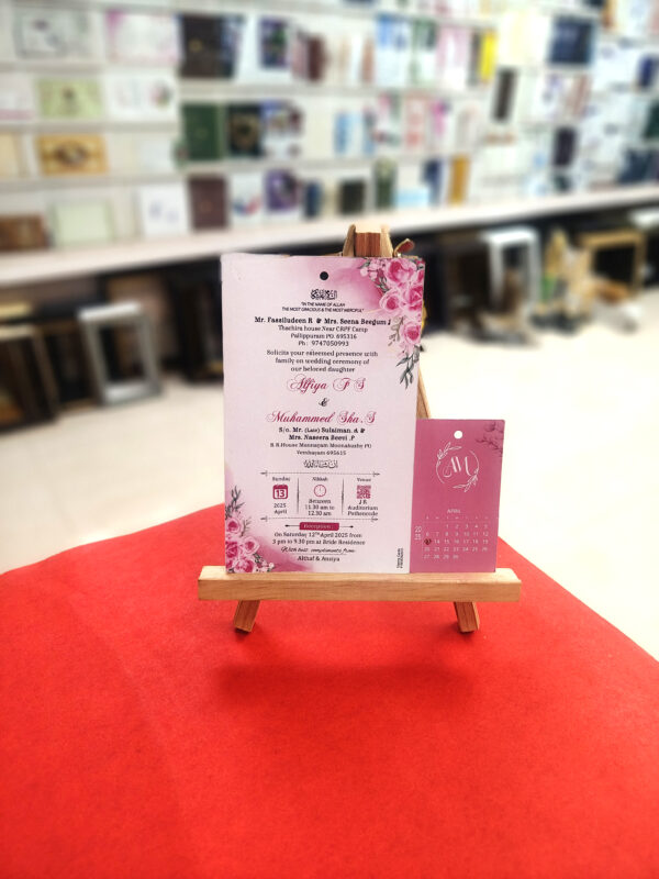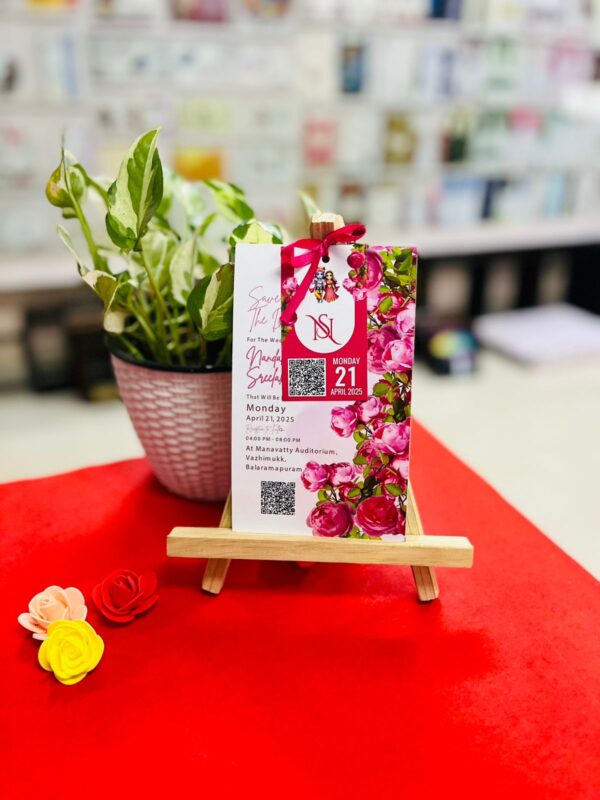 Crafted from durable 300 GSM thick board, the card measures 10.2 cm x 17.3 cm—compact, neat, and easy to handle. It features vibrant, full-color digital printing on both sides, finished with a smooth glossy coating that adds richness and visual appeal. Despite its premium look and feel, this card is affordably priced, making it a great option for large wedding guest lists.