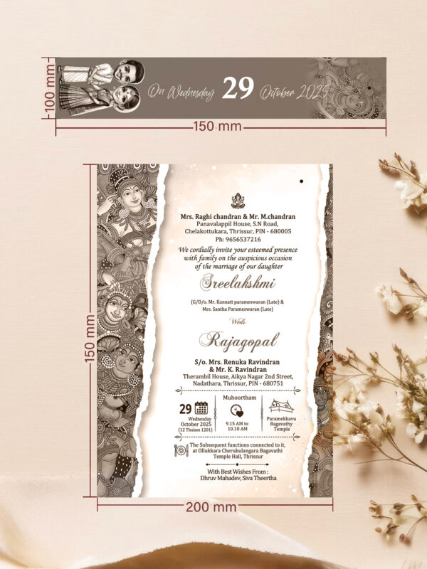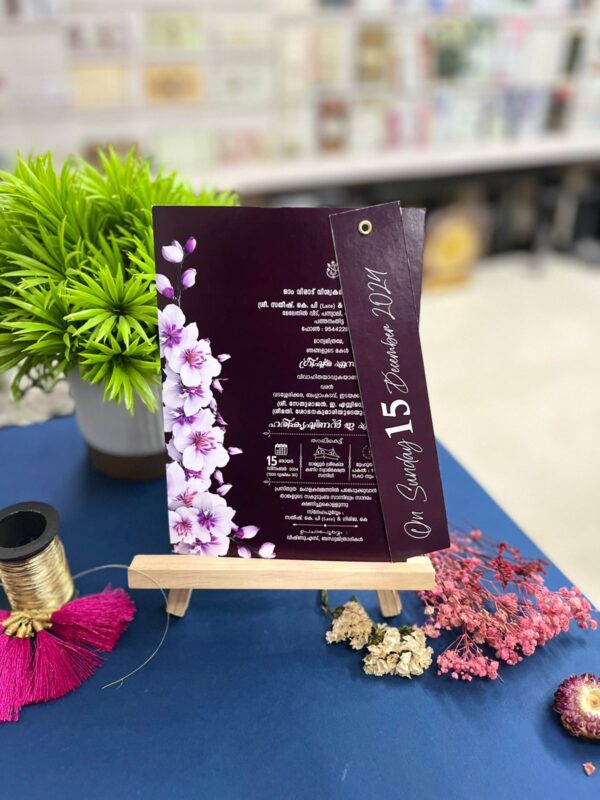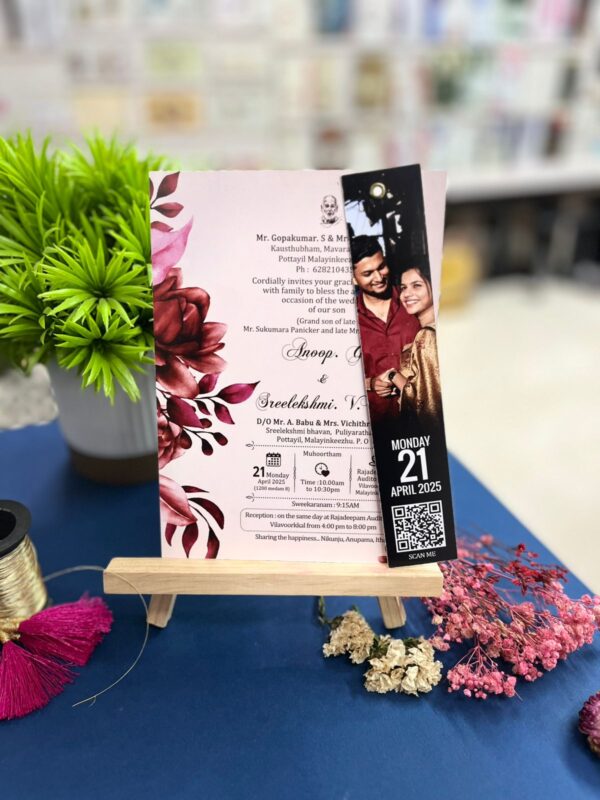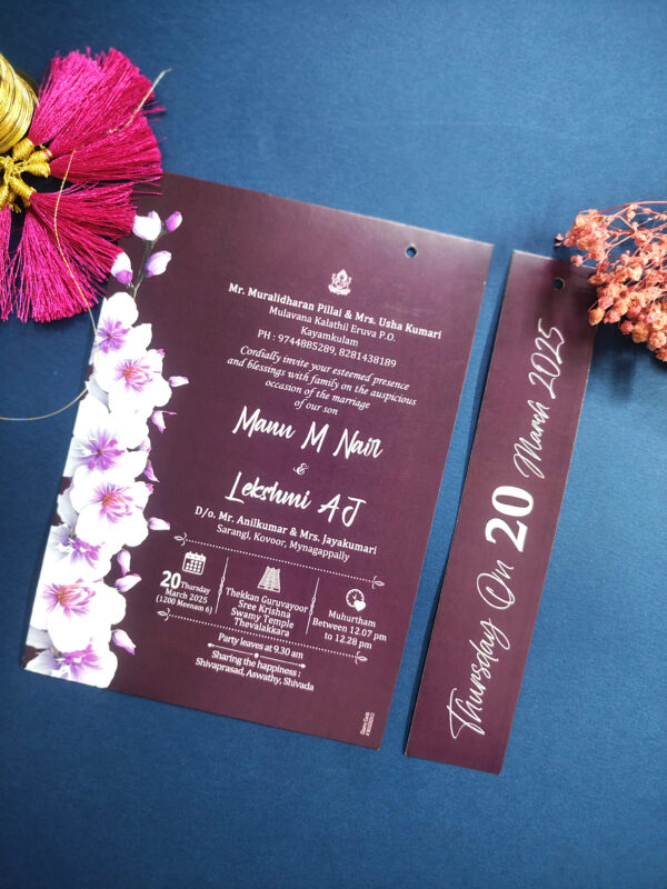 Crafted from durable 300 GSM thick board, the card measures 14.5 cm x 22.7 cm—compact, neat, and easy to handle. It features vibrant, full-color digital printing on both sides, finished with a smooth glossy coating that adds richness and visual appeal. Despite its premium look and feel, this card is affordably priced, making it a great option for large wedding guest lists.