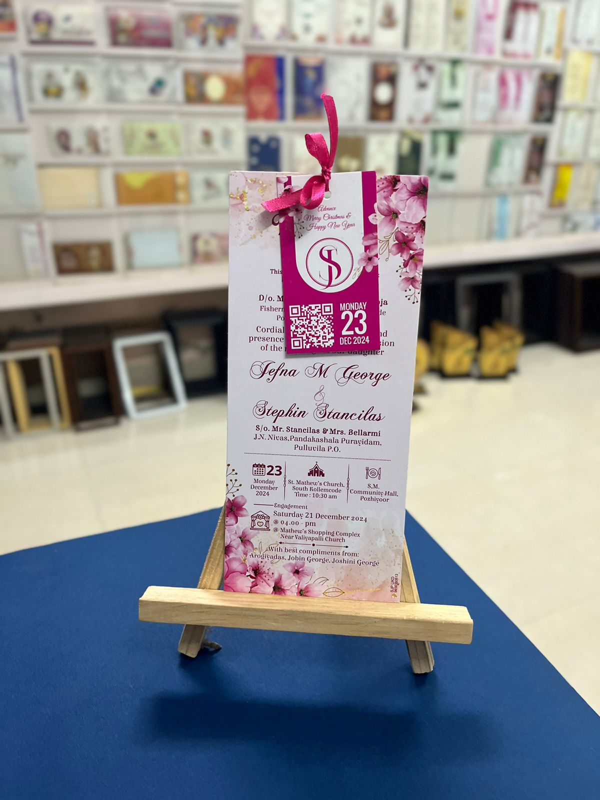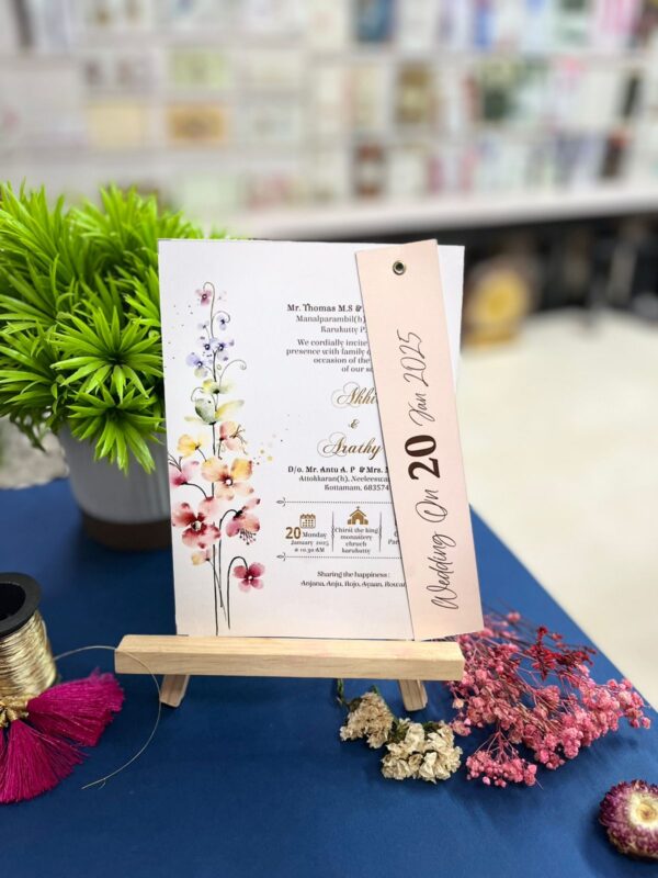 Simple, stylish, and budget-friendly—our Modern Trendy Wedding Card is perfect for couples seeking elegance without compromise. This 2-piece card design is beautifully attached with a colorful small ribbon, adding a playful yet polished touch to its modern look.