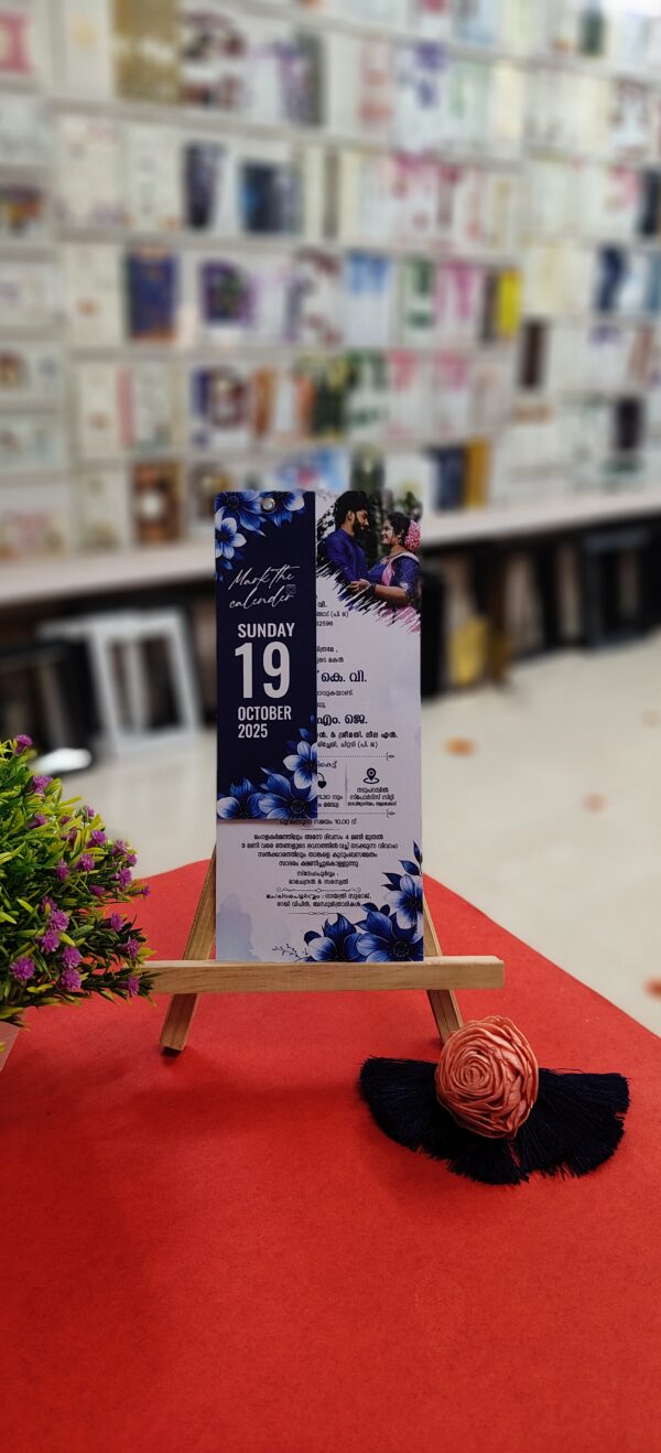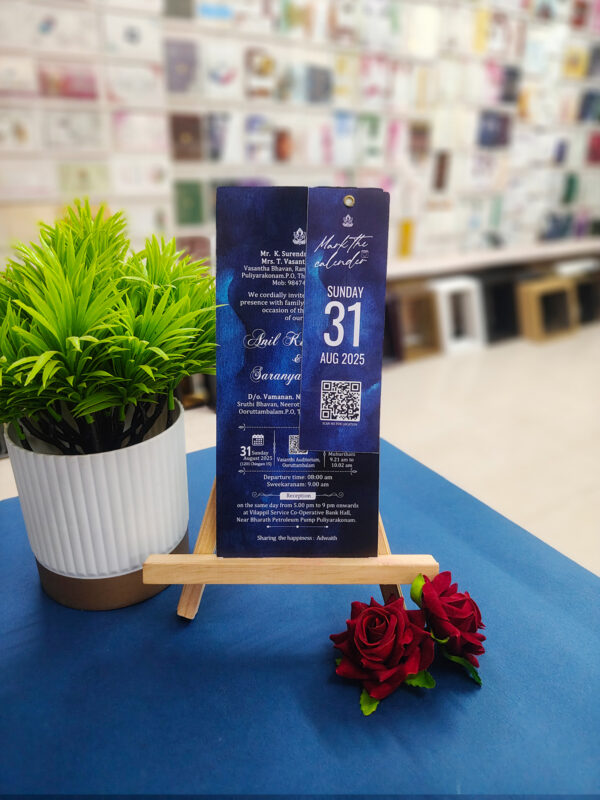 Crafted from durable 300 GSM thick board, the card measures 10.2 cm x 22.7 cm—compact, neat, and easy to handle. It features vibrant, full-color digital printing on both sides, finished with a smooth glossy coating that adds richness and visual appeal. Despite its premium look and feel, this card is affordably priced, making it a great option for large wedding guest lists.