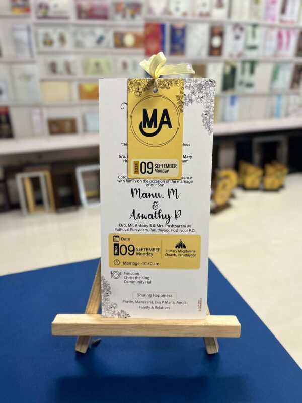 Simple, stylish, and budget-friendly—our Modern Trendy Wedding Card is perfect for couples seeking elegance without compromise. This 2-piece card design is beautifully attached with a colorful small ribbon, adding a playful yet polished touch to its modern look.